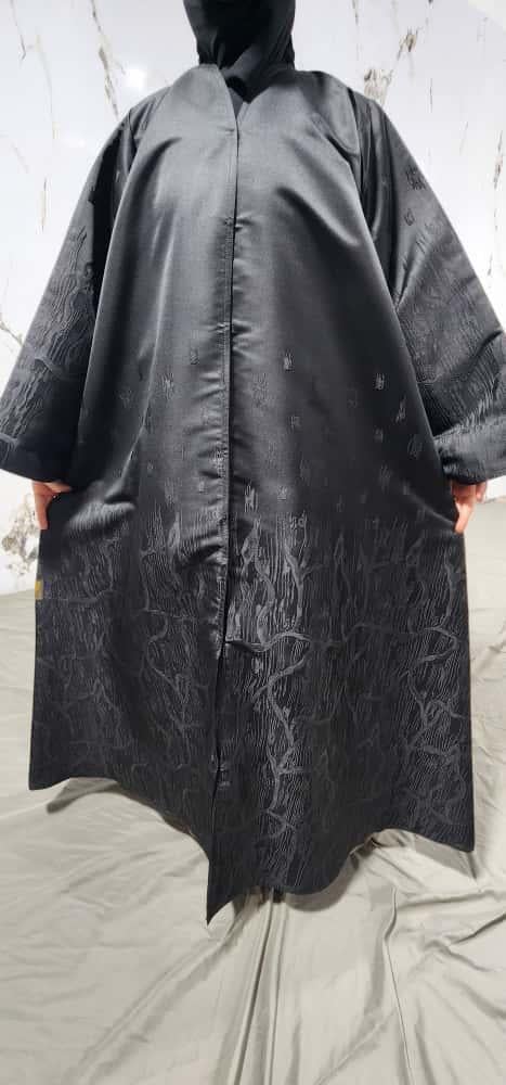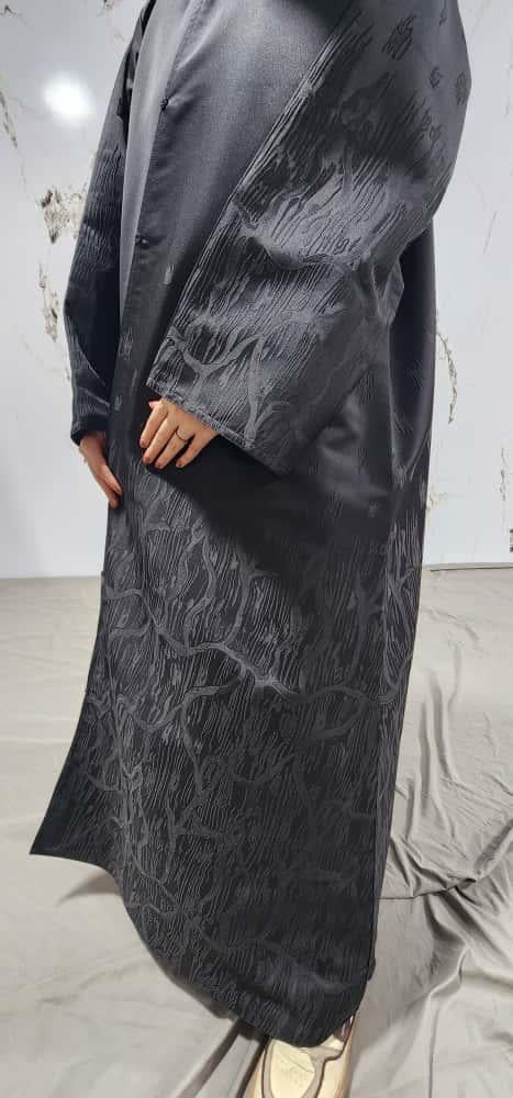تميّزي بإطلالة أنثوية وعصرية مع عباية جاكار بتصميم نص كلوش أنيق. مصنوعة من قماش كوري فاخر ممزوج بجاكار هندي عالي الجودة يمنحك ملمسًا ناعمًا وانسيابيًا، مع لمعة خفيفة تبرز الفخامة.
